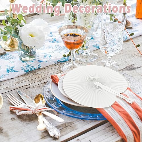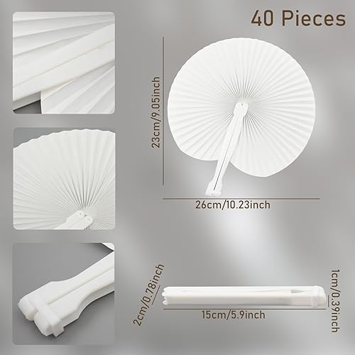 Lot de 40 Eventail mariage, AolKee Cadeaux de mariage - cadeau invité mariage, Fans de plis - Décoration de mariage - Décoration murale à faire soi-même, cadeau mariage invité, eventail blanc