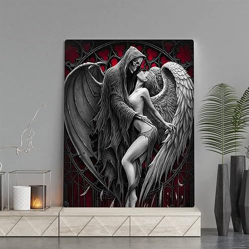 DCIDBEI 40x50CM Peinture Diamant 5D Complet Carré Square,Diamond Painting Kits de Broderie Diamant Mosaïque,Démon et Ange Canevas Diamant Kit pour Enfants et Adultes Puzzle Diamant Crâne et Femme
