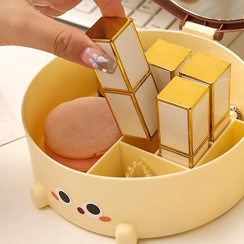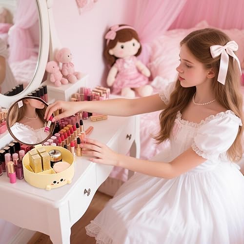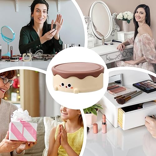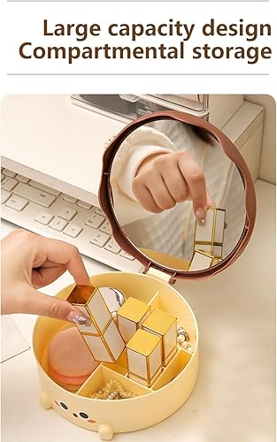 Zuasdvnk Trousse De Maquillage avec Miroir | Organisateur De Maquillage Rond Style Cake avec Miroir,Pochette Cosmétique Anti-Poussière Portable pour Bijoux, Rouge À Lèvres & Pinceaux