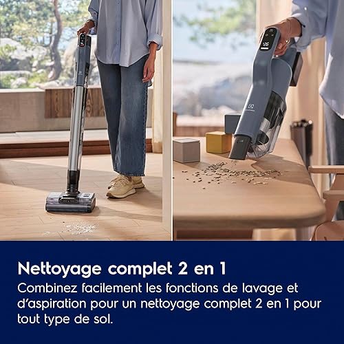 Electrolux 800 Wet&Dry, EW82U1DB, 2-en-1 Aspirateur laveur sans fil, Nettoyage humide et sec, Brosse TriAction, Système autonettoyant, Capteurs intelligents, Autonomie jusqu’à 35 min, Light Denim Blue