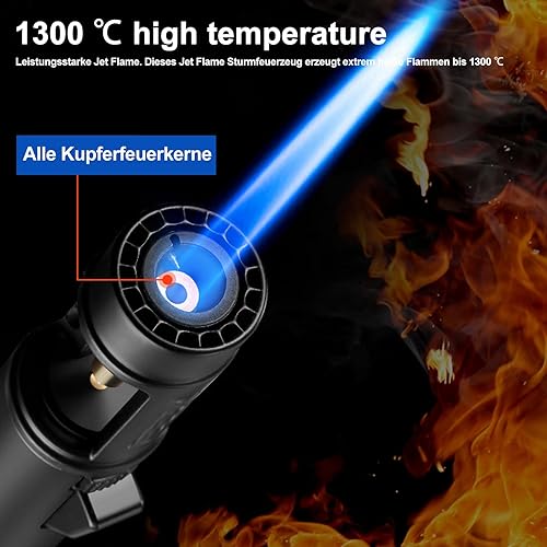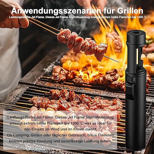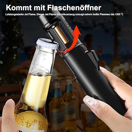 Briquet tempête rechargeable au gaz - Longueur : 18 cm - Avec décapsuleur - Coupe-vent - Pour bougies, cuisson, camping, barbecue, cheminée - Sans gaz