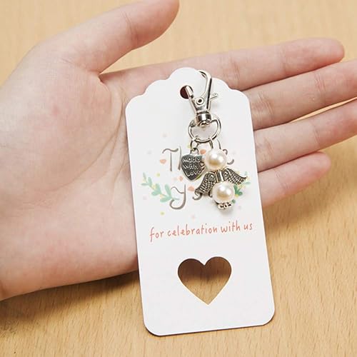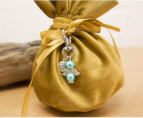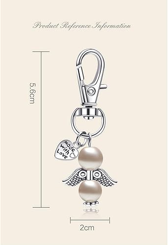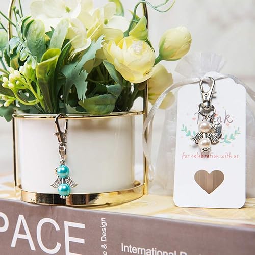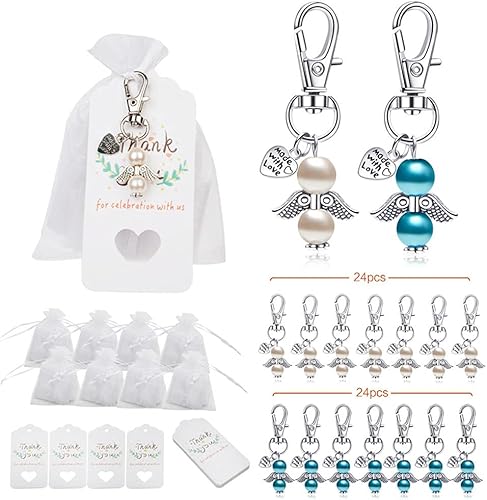 DanLink Lot de 48 Porte clés Ange Gardien, 48 Sachets en Organza, Rose Pendentif Ange en Perles Cadeau de Remerciement pour Mariage Baptême Noël Anniversaire Confirmation