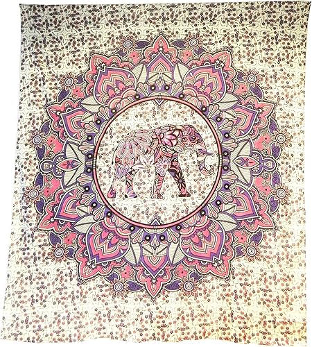 indischerbasar.de Couverture indienne Tenture Éléphants en cercle 235x200cm Coton Couvre-lit Rideau