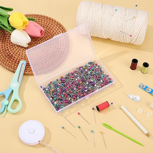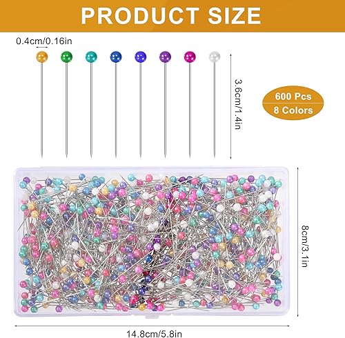 Épingles Couture 600 pièces Multicolores Epingle a Tete Ronde Epingle Couture Droites avec Tête de Perle en Plastique pour Tissu Bijoux Loisirs Créatifs et Projets de Couture 38mm