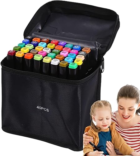 Marqueurs double face – 40 marqueurs de dessin de couleur pour artistes | Stylo à double pointe 40 outils de couleurs pour le scrapbooking, les cours d'art, le journal, les tout-petits, la maternelle