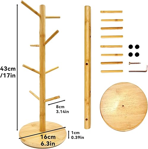 SNAIL GARDEN Porte-tasses avec 8 crochets, arbre à tasses à café avec autocollant antidérapant, arbre à tasses en bois, arbre à tasses pour cuisine, salon, chambre à coucher, comptoir