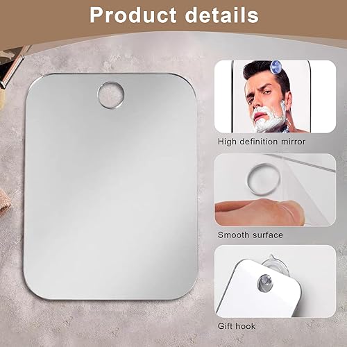 1 miroir de douche pour le rasage, miroir de salle de bain anti-buée avec crochet à ventouse amovible, miroir portable en acrylique incassable pour voyage, camping, maquillage et salle de bain