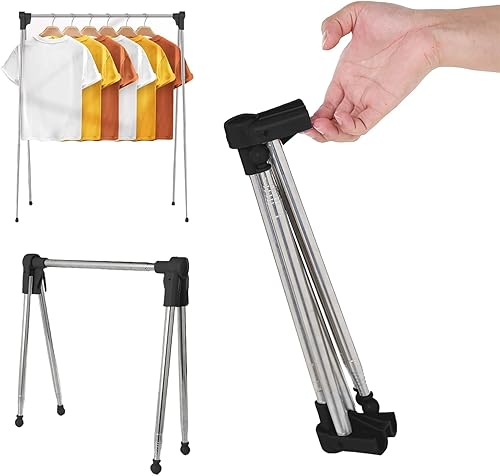 Hengrongshen Portant à vêtements portable pliable extensible - Tringle à vêtements rétractable - Porte-vêtements de voyage stable - Petit et léger - Séchoir à linge pour le camping, le linge à la
