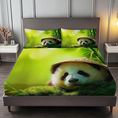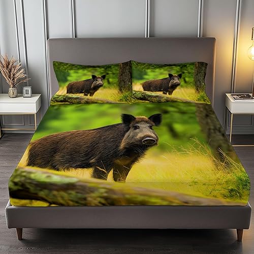 Drap-Housse 3D Animaux Sanglier Parure De Lit Drap Imprimé 90 x 200 cm avec Deux Taies d'oreiller 65 x 65 cm, Vert Poche de 30 cm de Profondeur Confortable Et Doux
