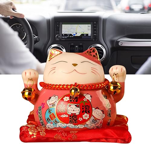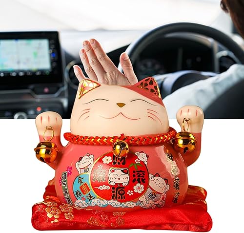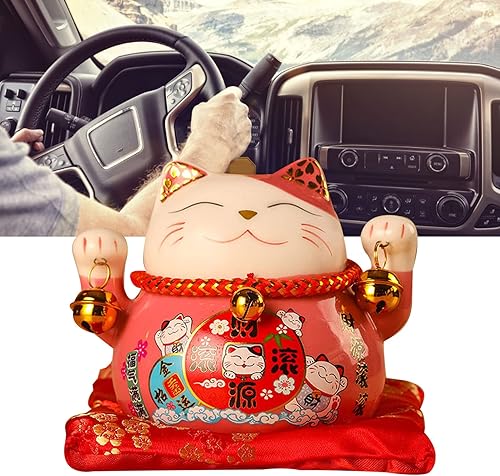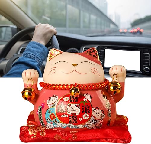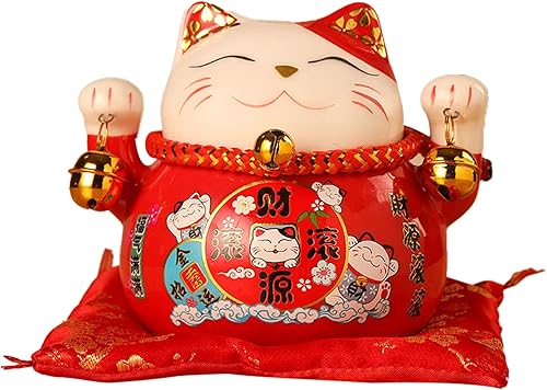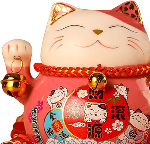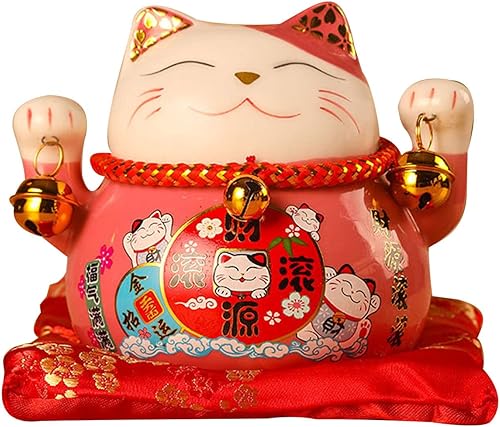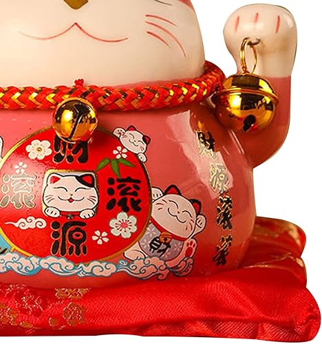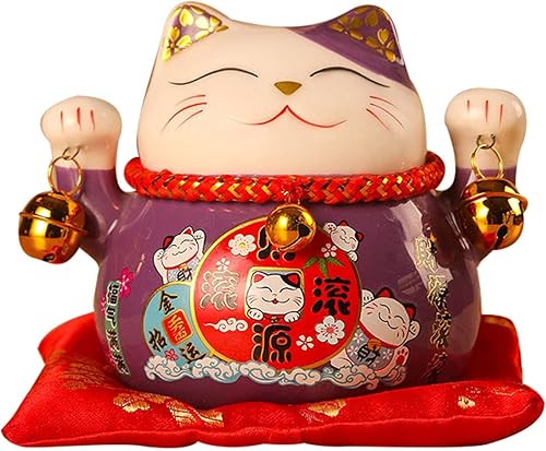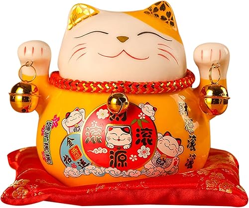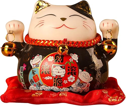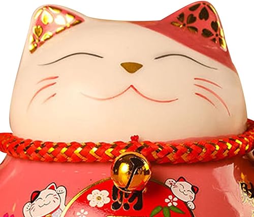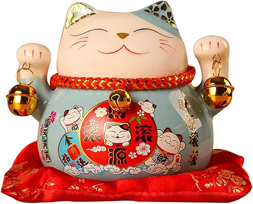 Tomotato Chat Porte Bonheur Tirelire, 11.5cm Maneki Neko Tirelire Japonais en Céramique avec Cloche Porte Bonheur, Feng Shui Lucky Cat Figurine Décor pour Bureau Affaires Décoration(F)