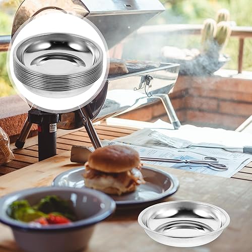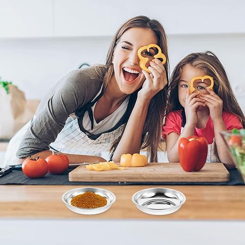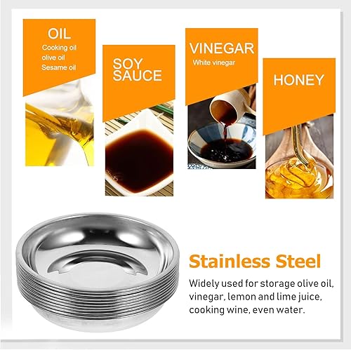 BESTonZON Lot de 10 coupelles à sauce en acier inoxydable - Mini assiettes à snack - Coupelles à sauce - Pour sauce soja - 8 cm