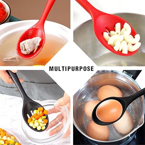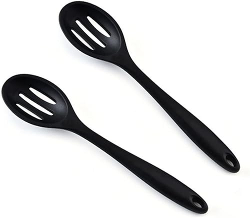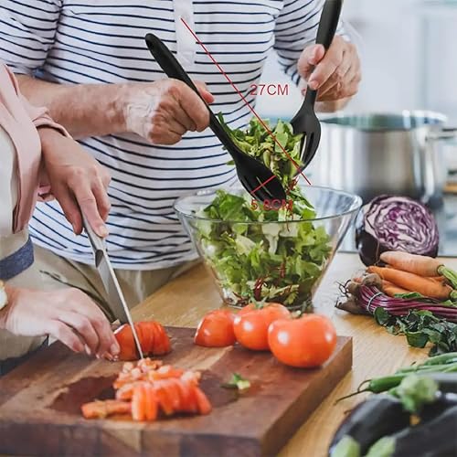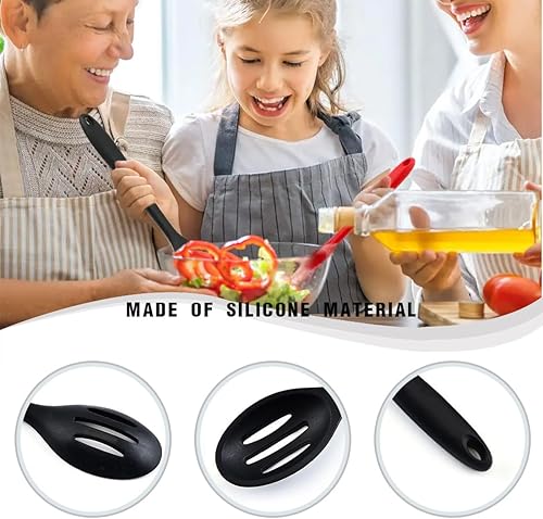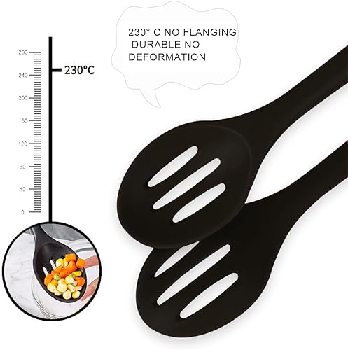 USTNIR Cuillères de Cuisine en Silicone, 27 cm Cuillère à Long Manche en Silicone Cuillères de Cuisine Antiadhésives Résistantes à la Chaleur pour Remuer, Sauter Mélanger Ramasser (Noir)