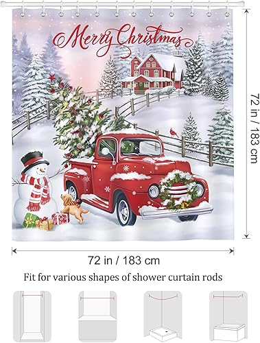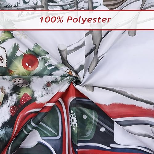 Bonhause Rideau de Douche Noël Camion Rouge Arbre Bonhomme de Noël Rideau de Bain Tissu Polyester Anti Moisissure Imperméable Lavable Rideaux Salle de Bain 180 x 180 cm avec 12 Crochets pour Baignoire