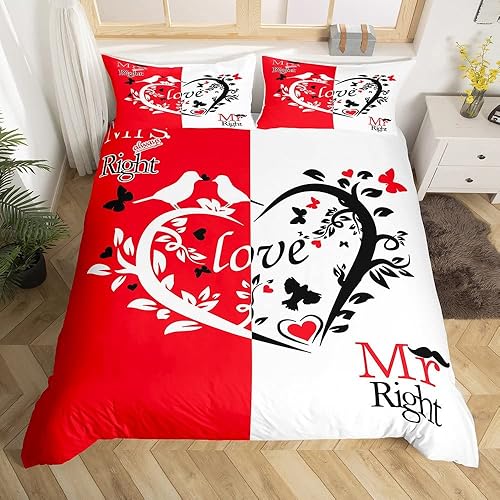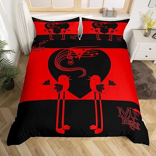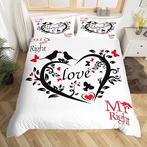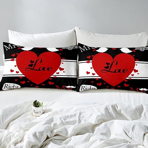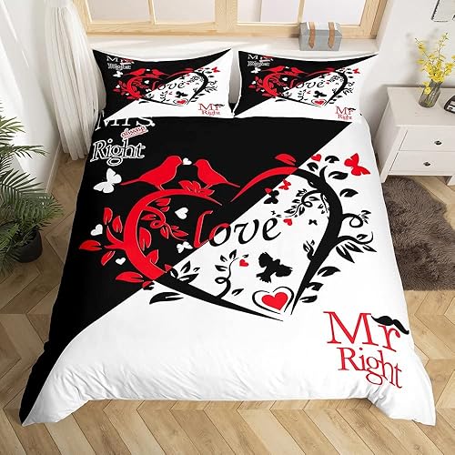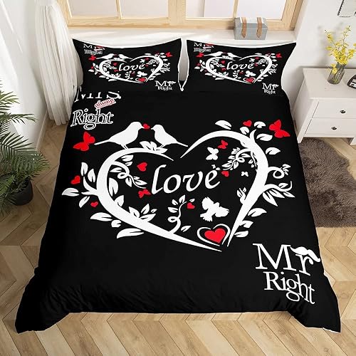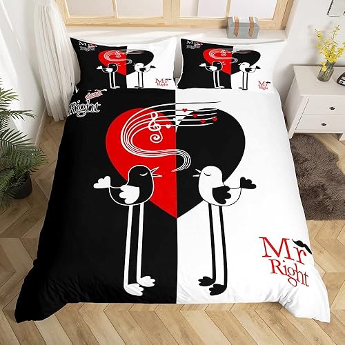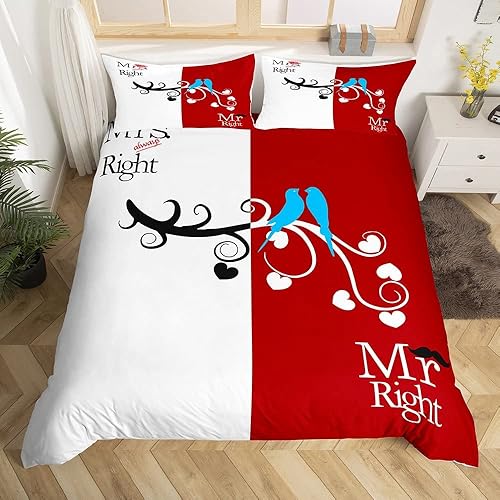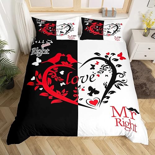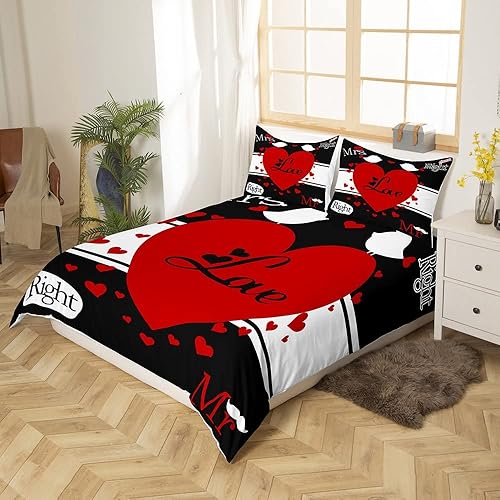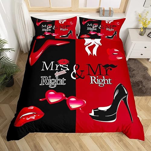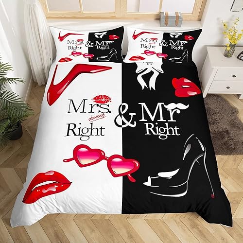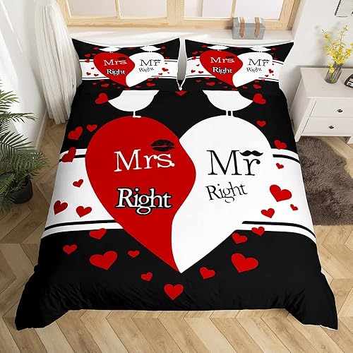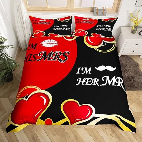Mr Mrs Parure de Lit 220x240cm Toi et Moi Parure Housse de Couette pour Couple Amoureux Hommes Femmes Funny Quotes Housse de Couette Or et Noir Mariage Romantique Thème Respirant Room Decor