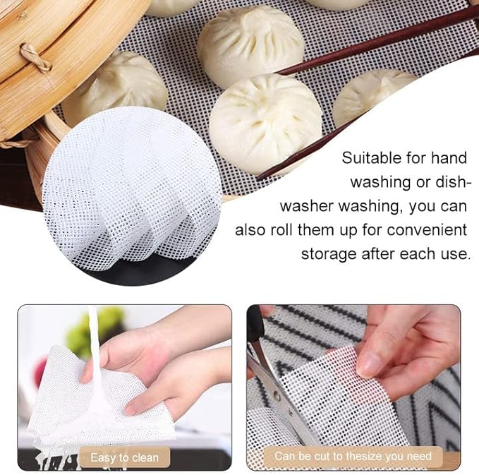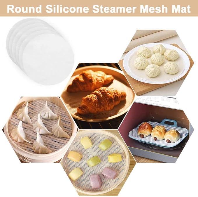 WENRERO 6 Pièces Feuilles de Déshydrateur de Silicone Tapis Déshydrateur Ronde Fruits Tapis Déshydrateur Antiadhésifs Tapis de Cuisson Vapeur en Silicone pour Boulettes Pains, 34 cm