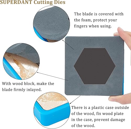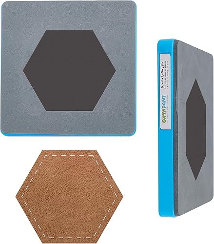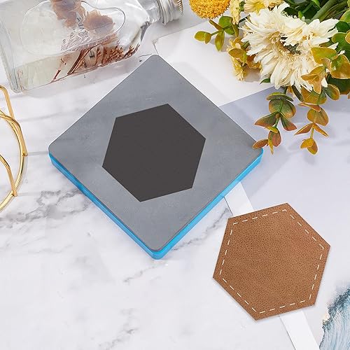 SUPERDANT Dessous de Verre en Cuir Matrices à Découper Hexagone Faux Cuir Die Cutter Machine DIY Matrices à Découper en Bois pour Café Boissons Porte-Lunettes Tapis en Cuir Couture pour Table Basse