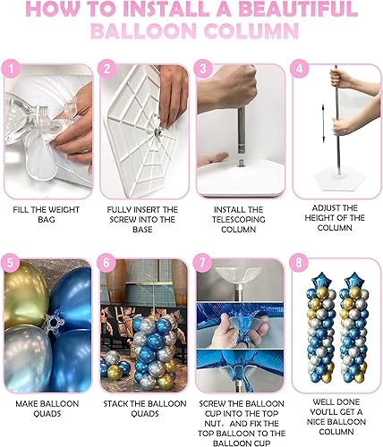 YALLOVE Lot de 2 supports de colonne de ballons en métal robuste - Hauteur réglable de 2 m - Pour intérieur et extérieur - Décoration de fête - Facile à monter et à démonter