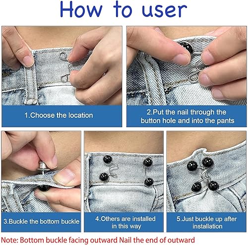 Plstod 6Pcs Bouton Jean Clipsable, Boutons à épingle Pour Les vêtements, Serre-Taille Ajustable, Bouton Jean Ajustable, Pour Pantalons Jeans