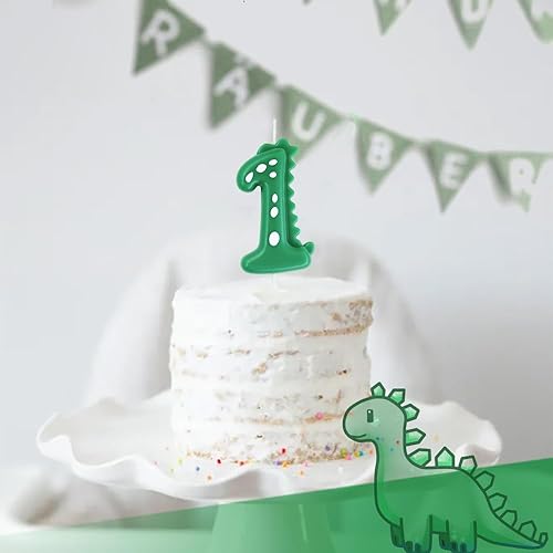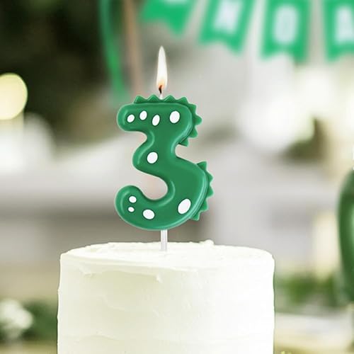 Bougie d'anniversaire 3 pour gâteaux, 7 cm, grande taille, numéro Dinasour, bougie pour décoration de gâteau, thème forêt, fête d'anniversaire, vert