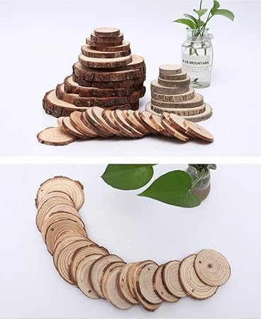 Lot de 40 disques en bois de 9 à 11 cm - Ronds - Pour travaux manuels, mariage, décoration de Noël