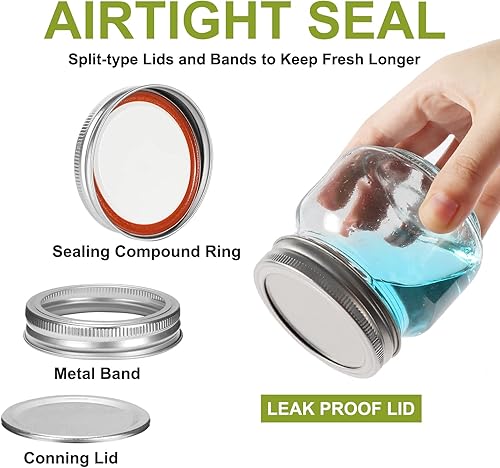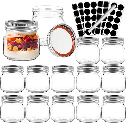 Lot de 12 bocaux Mason en verre de 240 ml avec couvercles à ouverture régulière, bocaux de rangement pour avoine, confiture, gelée, miel, haricots, épices, fête de mariage, cadeaux de douche
