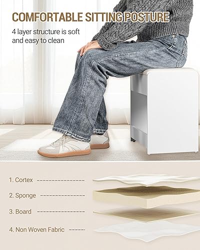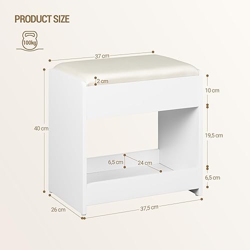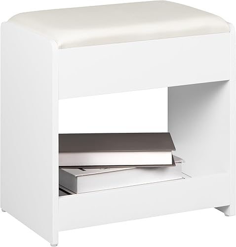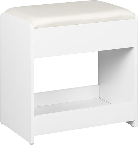 Hzuaneri Tabouret de Coiffeuse, Chaise Rembourrée de Maquillage, Repos-Pieds, Patins Antidérapants, pour Chambre, Dressing, Entrée, Blanc VS32403X