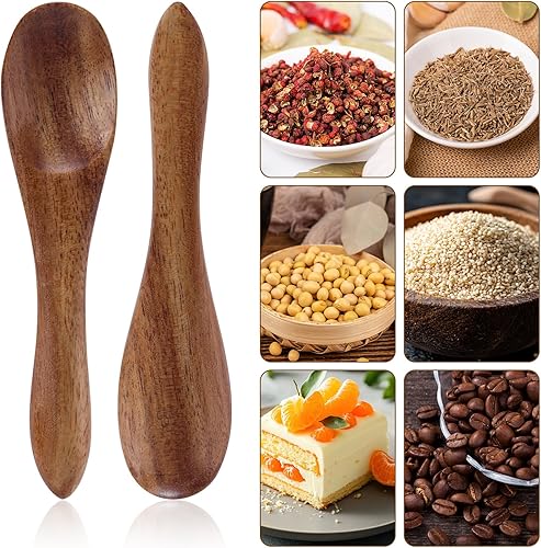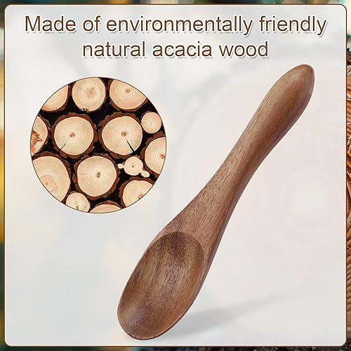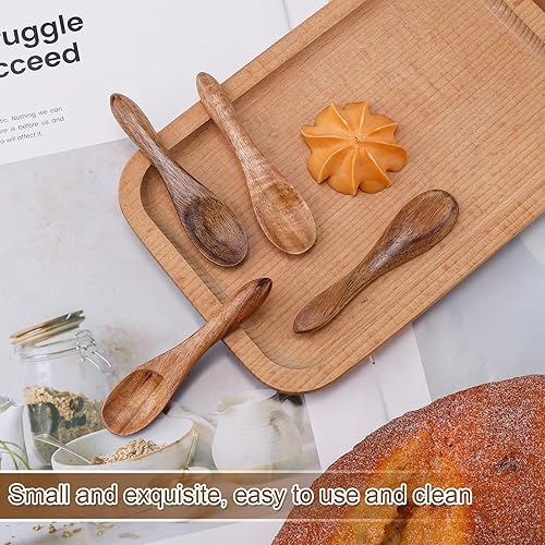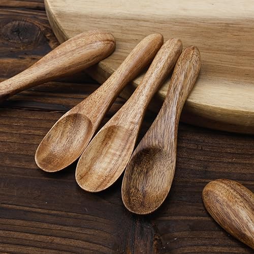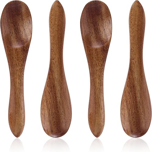 Gosknor 4pcs Cuillères en Bois, 9cm Mini Cuillères de Service en Bois pour Manger Cuillères à Café au Miel pour Remuer Café thé Bocal Condiments Sucre Cuisine Ustensiles de Cuisine et de Service