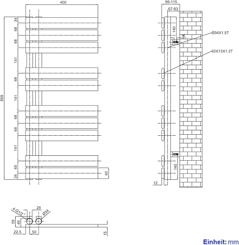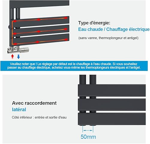 Heilmetz Seche Serviette 899 x 400 mm,Anthracite,Seche Serviette Eau Chaude radiateur seche Serviette Salle de Bain Plat