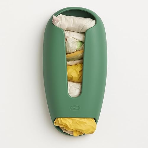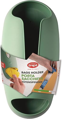 Snips Porte Sachets, Organisateur de Sachets Plastiques, Support Murale pour Sacs en Tissu, Organisateur pour Courses et Déchets, 28.5 x 14 x 8 cm, Vert, Made in Italy