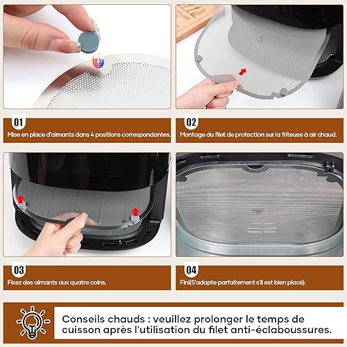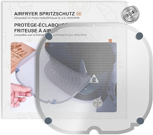 WIAZZLUK Anti-éclaboussures pour Air Fryer en Acier Inoxydable, Protection Anti-éclaboussures Accessoires Compatible avec Philips Essential Airfryer XL - 6.2L (HD9270/90), avec 6 Aimants