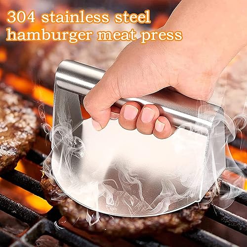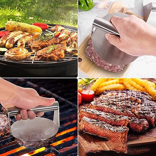 Xiumeso Presse à Hamburger en Acier Inoxydable 304, Presse Ronde Professionnelle pour Smash Burguers, Presse à Viande 12.5 cm Presse à Galettes Antiadhésive, Facile à Nettoyer