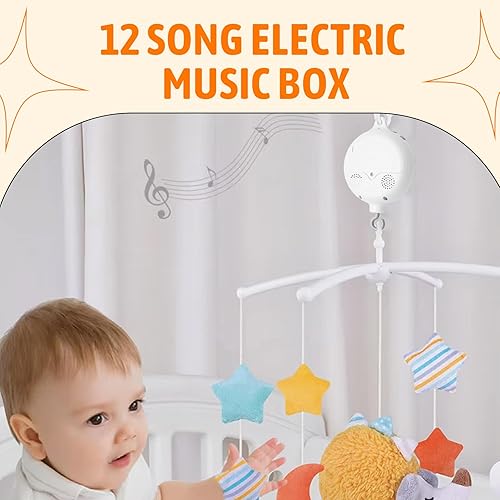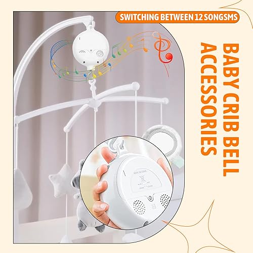 Gokelomg Boîte à musique mobile pour bébé - Avec 3 barres sonores - Réglable - 12 berceuses - Arrêt automatique après 30 minutes