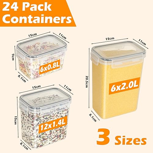 Withosent Lot de 24 boîtes de conservation avec couvercle - Boîte de rangement hermétique en plastique - Boîte à céréales (2 l, 1,4 l 0,8 l)