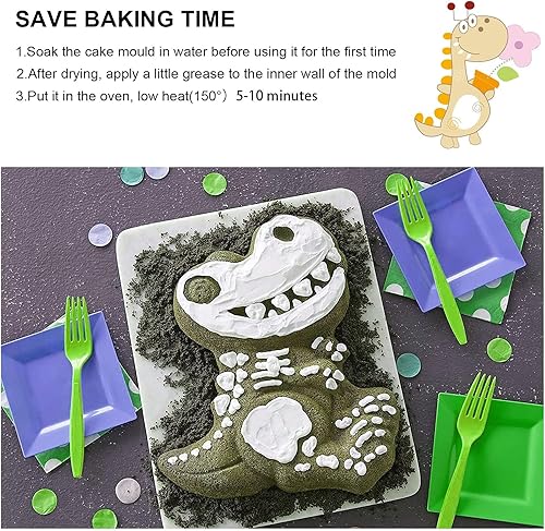 Moule à gâteau dinosaure 3D en aluminium pour anniversaire d'enfant - Moule à gâteau 3D mignon - En aluminium - Pour anniversaire d'enfant