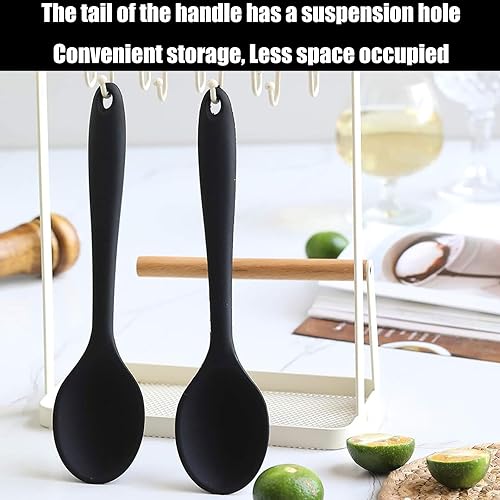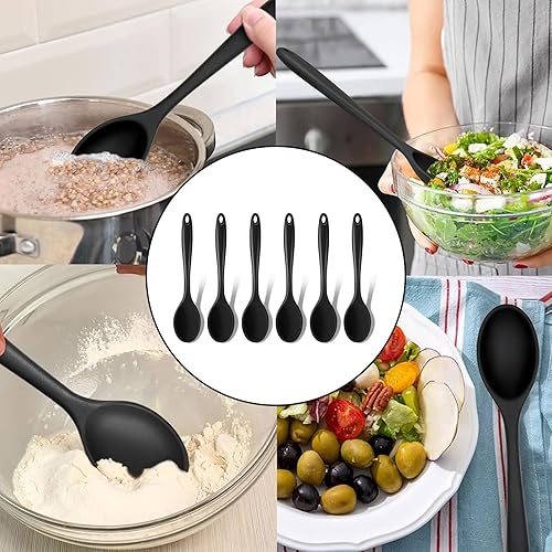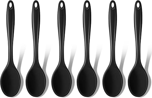 Lot de 6 cuillères en plastique - Cuillères de cuisine en silicone - Résistantes à la chaleur - Cuillères de service anti-adhésives - En silicone - Pour le camping, la cuisson, le mélange, la