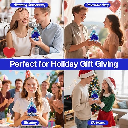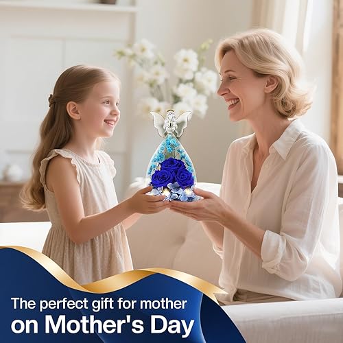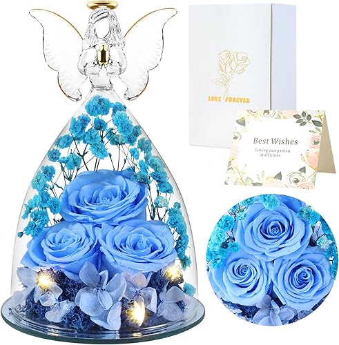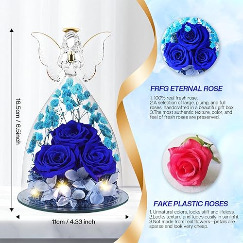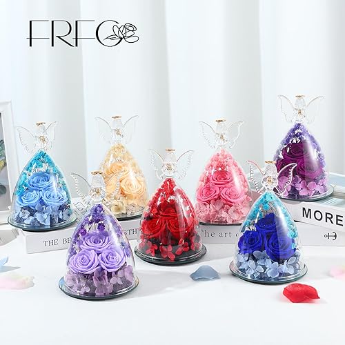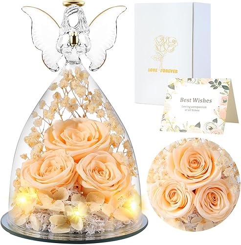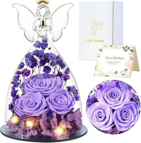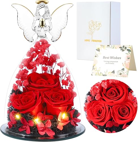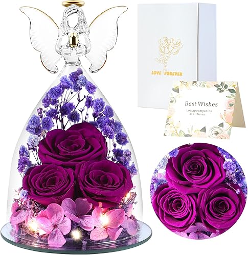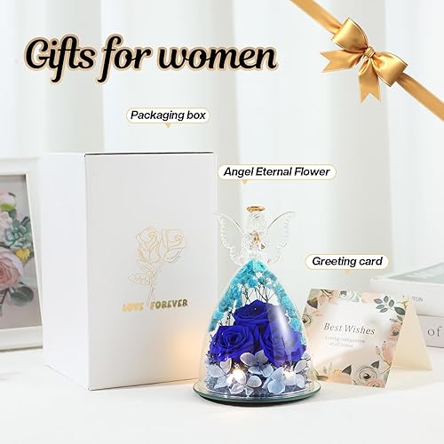 Cadeaux de Roses Eternelles pour Femmes, Cadeau Femme Roses Préservées dans des Figurines d'ange en Verre, Anges de Fleurs pour Maman Grand-mère, Epouse, Sœur, Petite Amie (Rose)