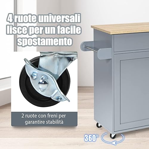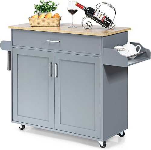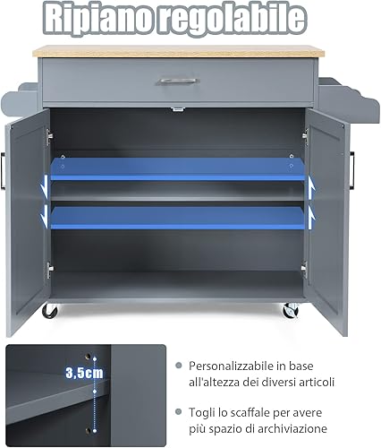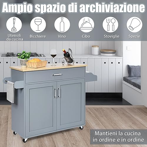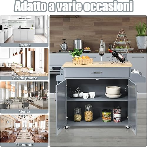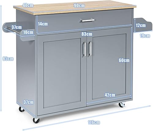 COSTWAY Chariot de cuisine avec roues en caoutchouc, étagère à micro-ondes, chariot de service, buffet cuisine bois moderne, élégant, 116 x 37 x 85 cm (gris)
