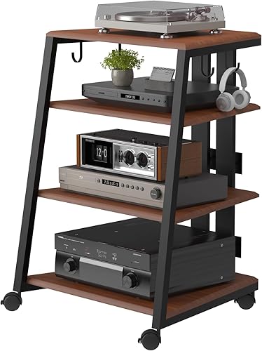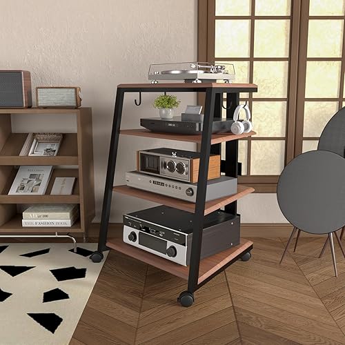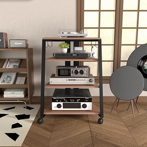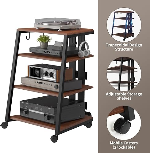 AIMEZO Étagère HiFi avec Support de Microphone, Support de Système Audio avec Étagère Réglable, Rack HiFi pour Chaînes Stéréo, Stockage de Disques Vinyles