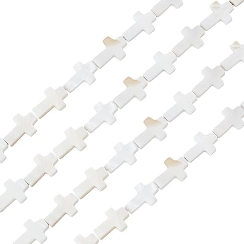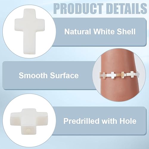 WEBEEDY 52 pièces Perles de Coquille de Croix Charm Perle de Nacre Blanche pour la Fabrication de Bijoux DIY Colliers Bracelets Boucles D'Oreilles Artisanat Fait Main Cadeau D'Anniversaire 1.4x1cm