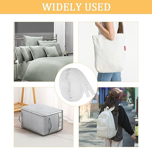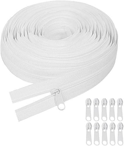 KOZOY Fermeture éclair sans fin avec fermeture éclair - Fermeture éclair sans fin - En métal - Longueur : 10 m - Largeur : 3 cm - En nylon blanc - Avec 10 fermetures éclair - Vendu au mètre
