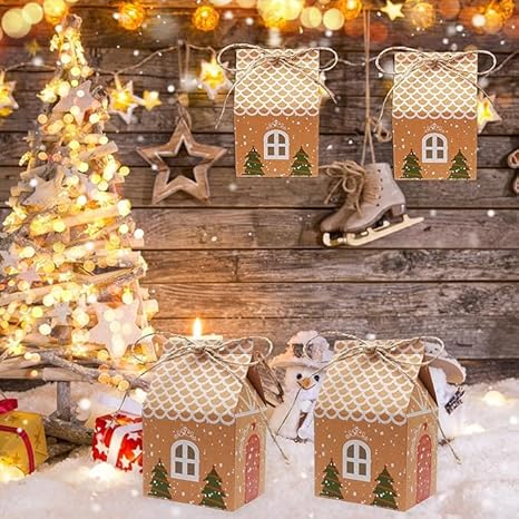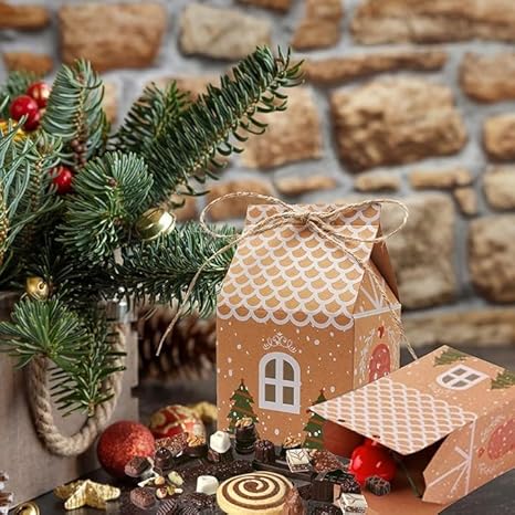 20 Pcs Decoration Noel Boite Cadeau en Papier Kraft, Petite Boite Cadeau pour Emballage Cadeau Bonbons, Chocolats, Biscuits, Dessert, Aliments (7 x 5 x 10,5 cm)