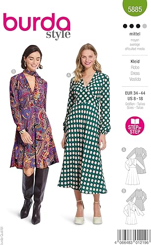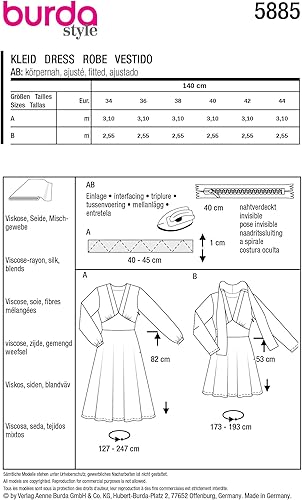Burda 5885 Patron de couture pour robes décontractées [Femme, Tailles 34-44] Niveau 3 pour les utilisateurs avancés