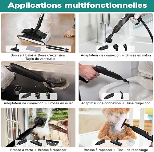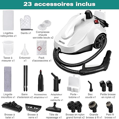 KROQO Nettoyeur vapeur multi-usages avec 23 accessoires, pour retirer le papier peint, le sol, la moquette, le canapé, les meubles rembourrés, la voiture, le carrelage, le rembourrage, la salle de