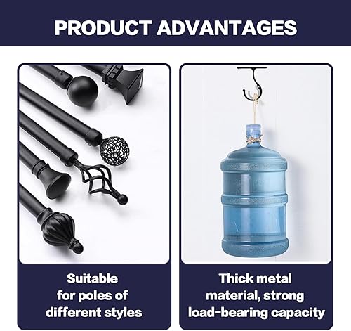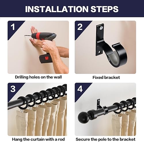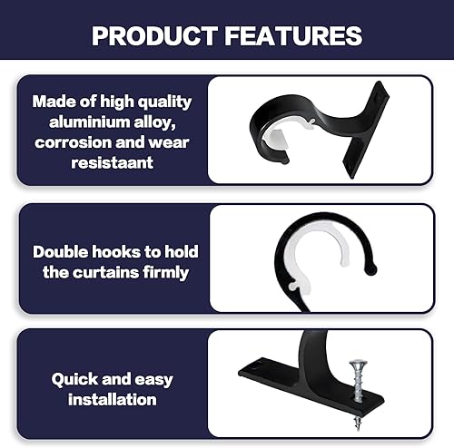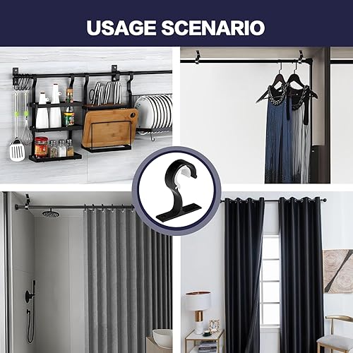 Supports de Rideaux Réglables, 4 Pièces Support de Tringle à Rideau pour 25 à 28 mm, Crochets à Draperie avec Vis et Ancrage Mural, Alliage d'Aluminium Support Tringle Penderie (Noir)