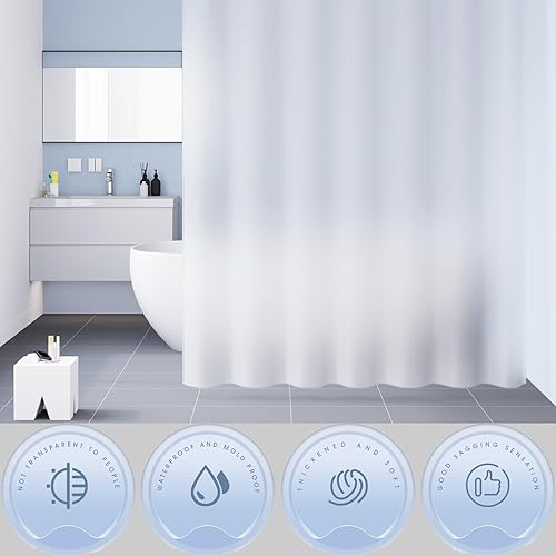 Calefee Rideau de Bain 120x180, Rideau de Douche Peva Semi Transparent Blanc, Rideau de Douche Lesté en Bas Anti Moisissure