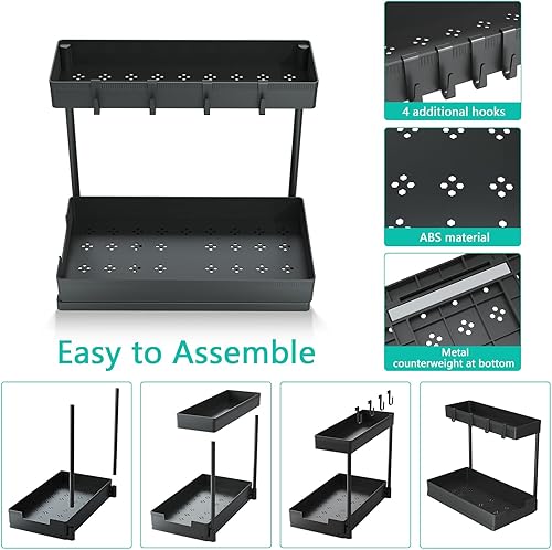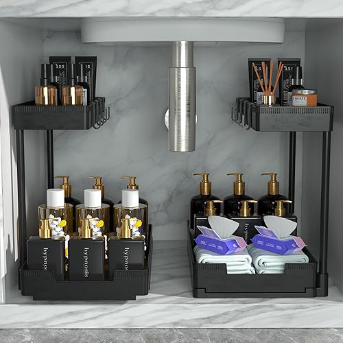 JUJEKWK Lot de 2 Rangement sous Évier - Organisateur sous Evier Tiroir Coulissant à Extraction - Rangement Et Organisation De Cuisine - Panier de rangement multifonction pour salle de bain - Noir