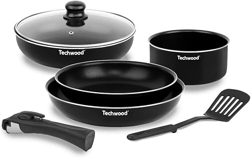 Techwood TSA-6799Set de 1 Casserole, 1 Sauteuse et 2 Poêles 7 pièces, 1 Casserole de dimension 18 cm de diamètre 1 Sauteuse de dimension 26cm de diamètre 2