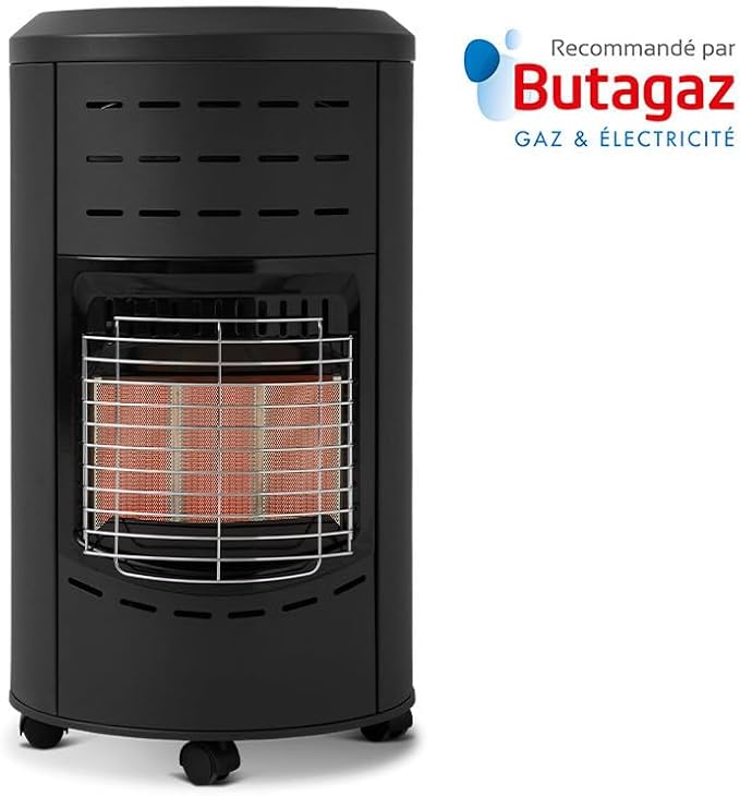 FAVEX - Chauffage d'appoint gaz Calgary - Intérieur - Brûleur céramique Infrarouge - 3 Puissances de Chauffe - Jusqu'à 40 m², Acier, Noir