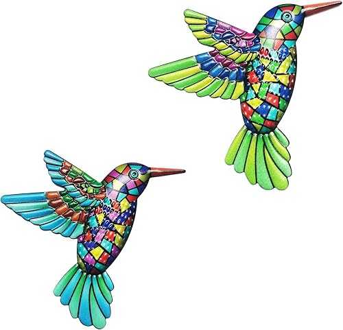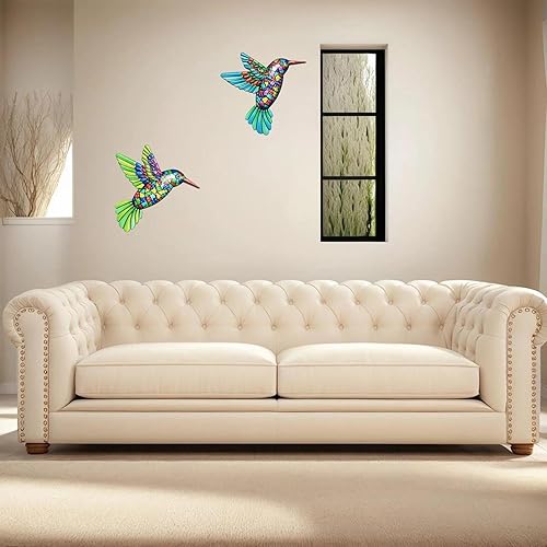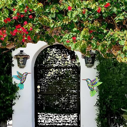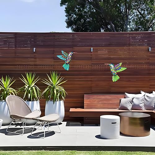 HGNUT 2PCS Colibri Jardin Décorations murales - Décoration extérieure en acrylique bleu et vert vibrant (13cm)