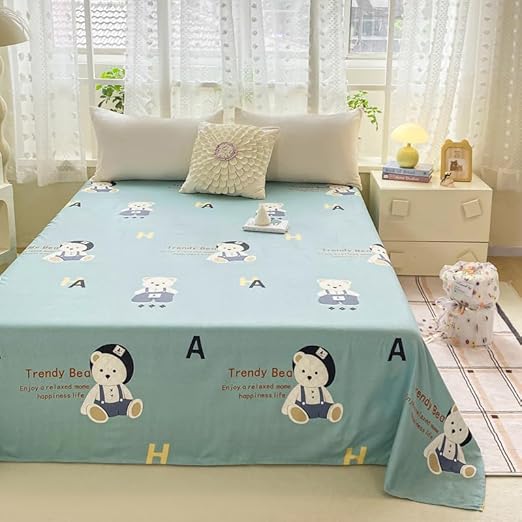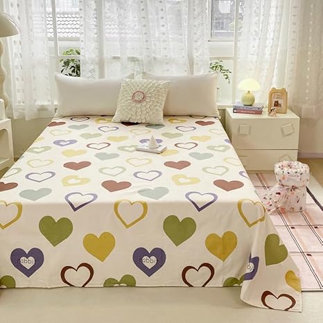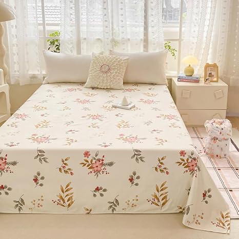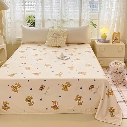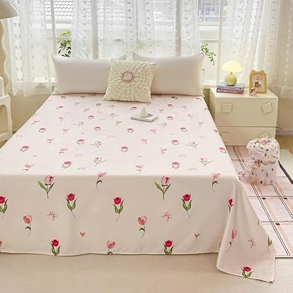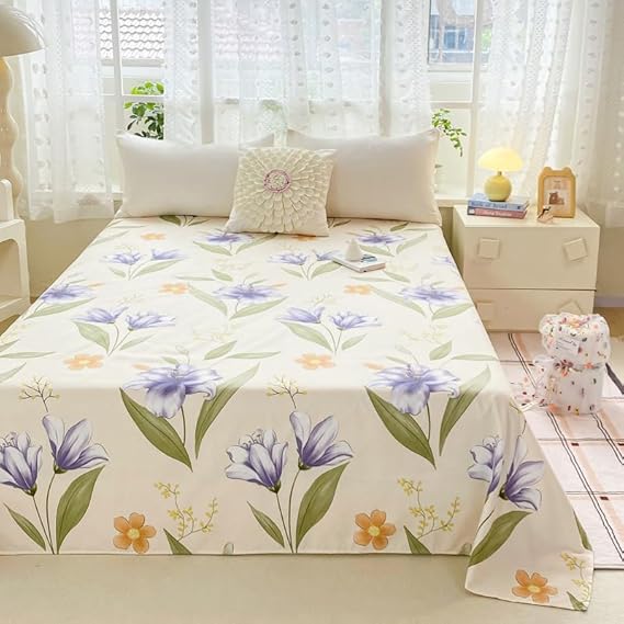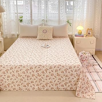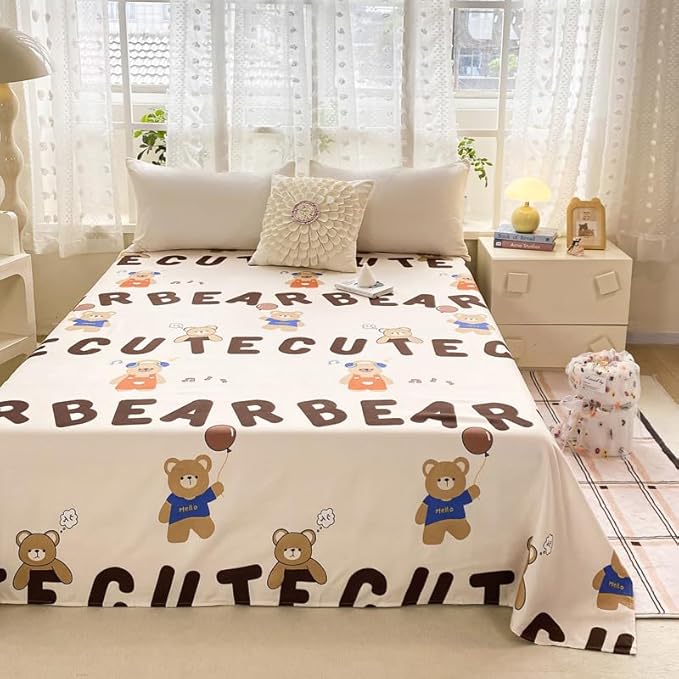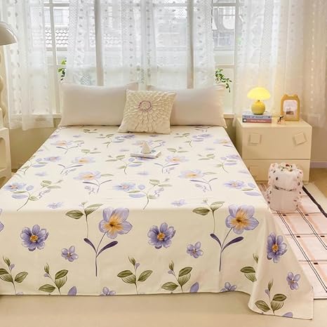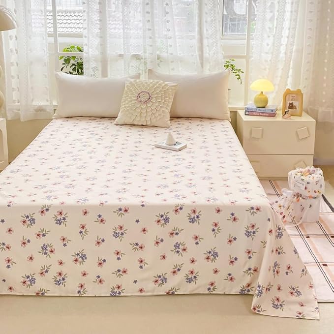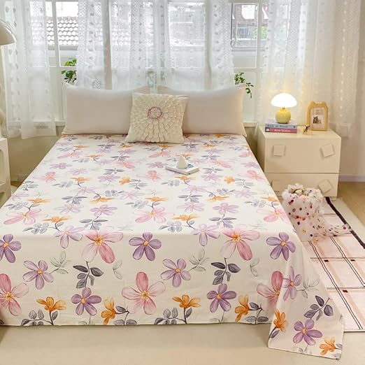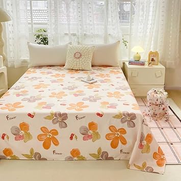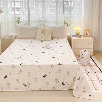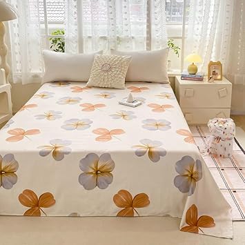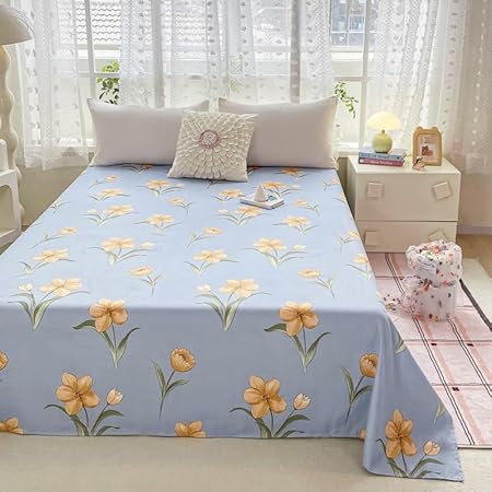 Drap de lit à motif mignon – Petite parure de lit en microfibre brossée douce à motif floral, drap plat épais et respirant pour dortoir, lit superposé, décoration de chambre d'étudiant (03, 200 x 230